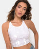 Koop een nieuwe garderobe headliner en zorg ervoor dat je slay in pailletten! Ga helemaal uit in de clear disc pailletten, of je nu uitgaat met de meiden of feest op een festivalveld. Met zijn korte lengte en rugloze pasvorm met bandjes is hij perfect te combineren met de Ewi rok, diamanten choker en hak met enkelbandje.