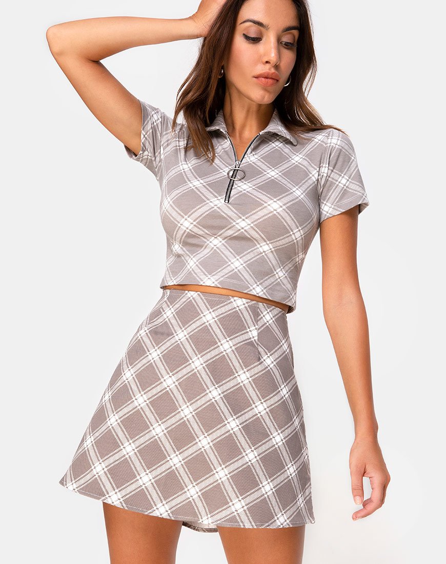 Nieuw seizoenscoördinaat? Check! Neutrale tinten zijn de subtiele hint naar de zomer en ons wit met taupekleurig ruitje is het meest dromerig. De Annie rok heeft een a-lijn minipasvorm met hoge taille en ritssluiting op de rug. Combineer hem met de Dhen crop top voor een super veelzijdige twin set.