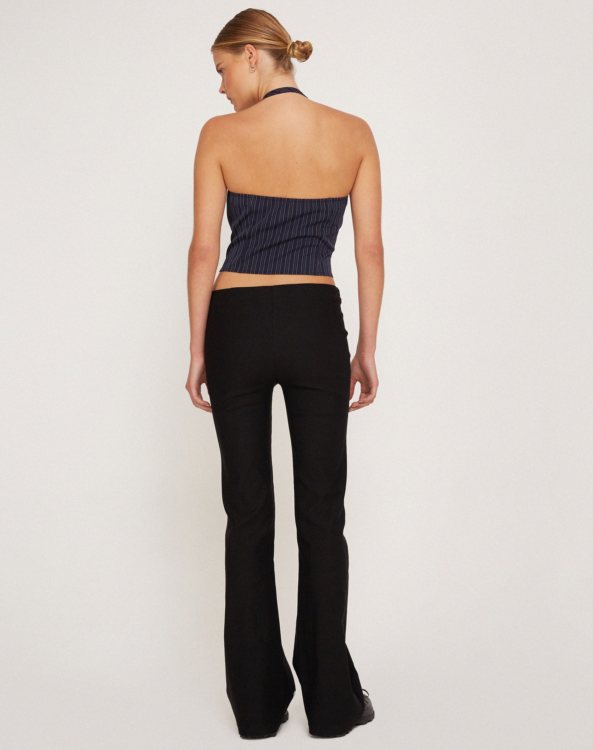 Verfraai je garderobe met ons nieuwe krijtstreeppatroon collectie. Deze marineblauwe crop top heeft een bandeau pasvorm met dunne halternek bandjes. Combineer met onze Signe broek voor de perfecte outfit van dag tot nacht.