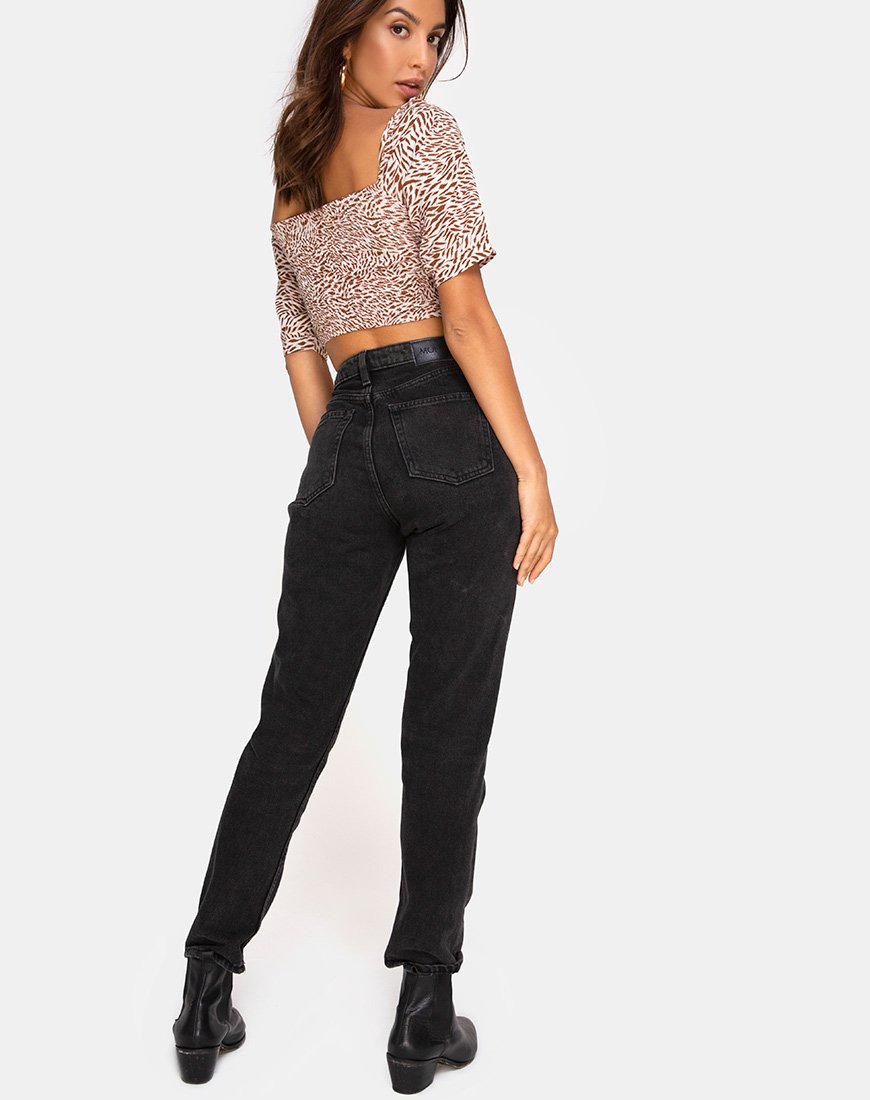 Wild en prachtig, de Flory top wordt je nieuwe winnaar. Een casual top in een taupe safariprint, met een korte pasvorm, een sweetheart halslijn, knoopdetails aan de voorkant en 3/4 mouwen. Ga mee in de melkmeidentrend en combineer eenvoudig met een denim broekje.