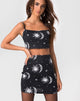 Als je deze AW op zoek bent naar een basisprint, zoek dan niet verder dan de zon, maan en sterren. De Kini crop, met zwart-witte print, heeft een bijgesneden pasvorm met vierkante halslijn en dunne bandjes. Ga voor een statement van top tot teen en combineer met de Kimmy rok.
