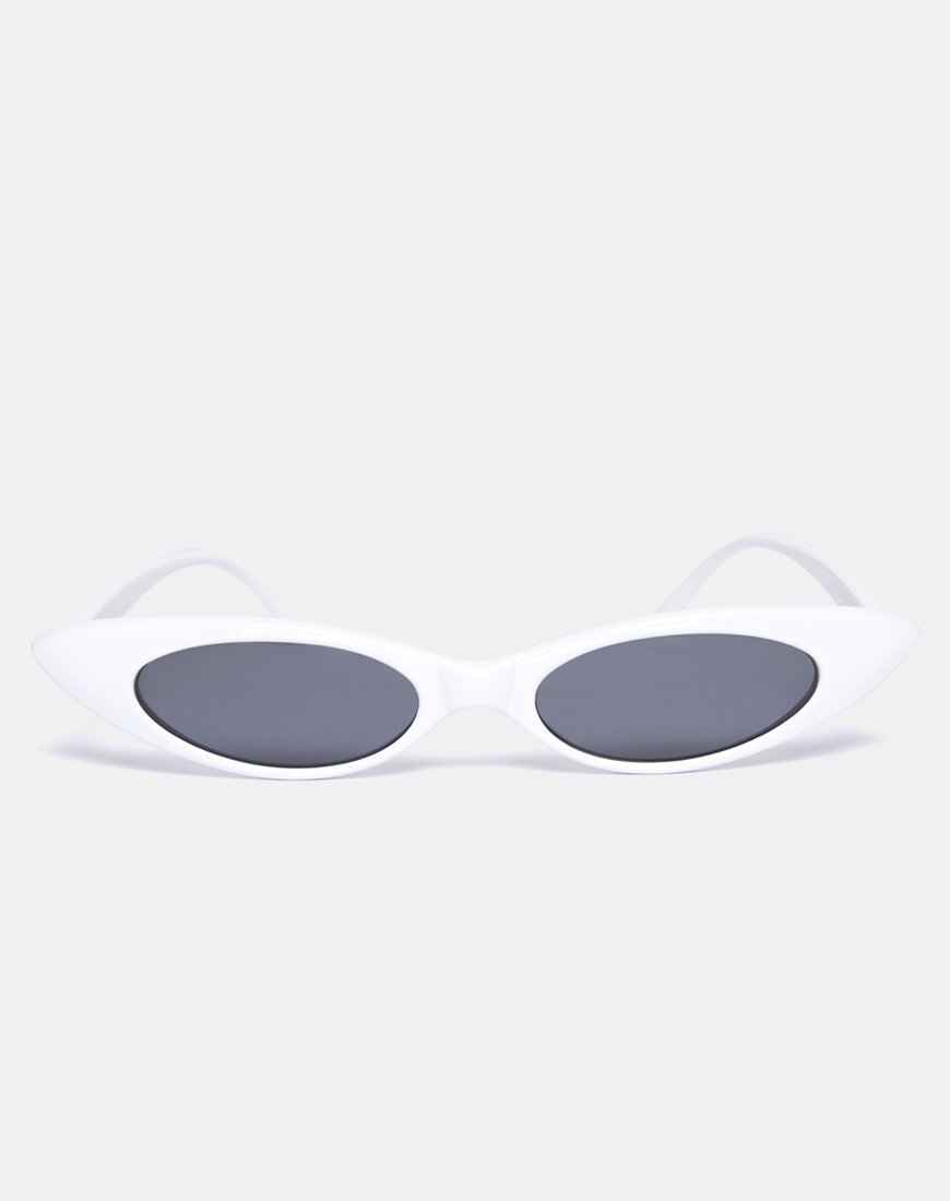 Zonnebrillen zijn dit seizoen niet meer weg te denken uit het straatbeeld, dus zorg dat je er klaar voor bent voor de zomer, vakantie of het festival. Bestrijd de schittering met de Kourt zonnebril, met een witte puntige cateye en een zakje met trekkoord.