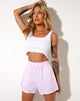 Zoet in strepen is de look van onze Lala kort je zal geven. In een roze en witte verticale streep heeft deze short een hoge elastische taille met een losse short en steekzakken. Houd de look basic met een crop top.