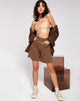 Jouw jeans pool is niet compleet zonder de Loose fit kort. In een rijke bruine kleur hebben ze een longline loose short, hoge taille, knoop- en ritssluiting met zakken en riemlussen. Voeg de Jola top om de look af te maken.