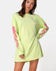 Val op met de Lotsun trui. Ga niet op in de massa met zijn flurogroene tint, roze vlammende mouwen en losse longline pasvorm. Of je hem nu draagt met een cargo broekof draag hem als jurk met een stevige trainer, het is een echte blikvanger.