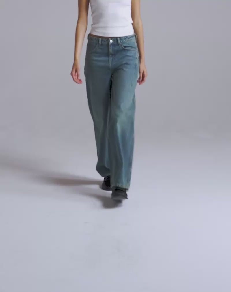 Low Slung Roomy Jeans in Vintage Blauwgroen