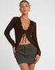 Zie er schattig uit in de Mahina cardi. In een zacht gebreid chocoladebruin, met lange mouwenmet schulprandjes en een striksluiting aan de voorkant. Combineer met de ajeng rok om de look te krijgen.