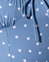 Word gespot in onze Mazu top! Met een cropped fit, korte pofmouwen, vierkante halslijn met een verstelbare strik in een blauw-witte polkadotprint. Combineer met een zwarte short, onze witte dubbele riem riem en docs om je look af te maken.