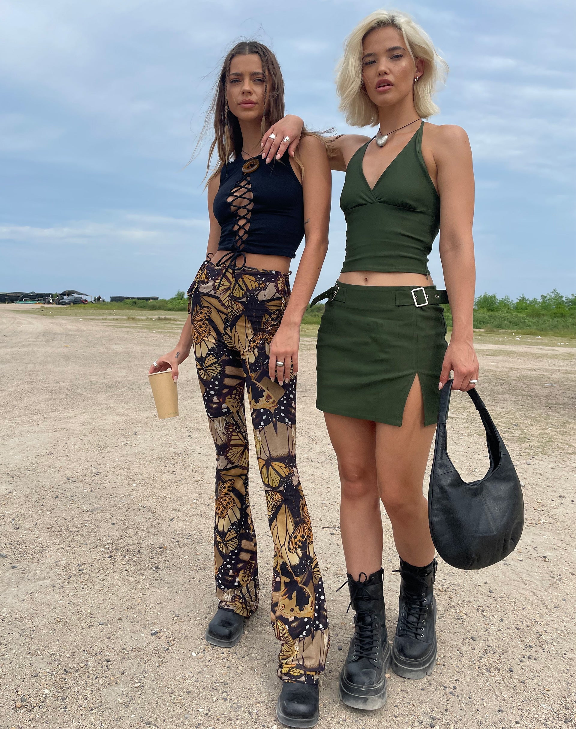 Onze Mileri broek is dit seizoen zeker een iconisch stylingstuk voor jou. Met een flare stijl, hoog getailleerde pasvorm en strikdetails in de taille. Combineer met de Rave top en Cavita jasje.
