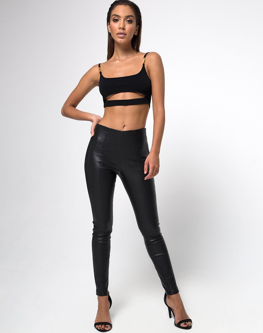 Maak je klaar om je look te verbeteren met een 90's crop en opvallende uitsnijdingen. Rock je lichaam met de mish top, in een cropped lengte heeft het een slash cutout en dunne bandjes met een gouden gesp detail. Maak de look af met een wet look legging en een nauwelijks zichtbare hak.