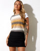 Voeg wat breisels Voeg wat breisels toe aan je outfit met de Shaya tank. In een gebreide mosterd, grijs en witte streep heeft deze tank een mouwloze pasvorm met een ronde halslijn. Stijl eenvoudig met de Ima rok in zwart.