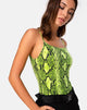 Als je gepakt wordt met zorg er dan in ieder geval voor dat je vuur ziet als je dat doet! De sol lijfje is een top voor alle gelegenheden met zijn bodycon pasvorm, vierkante halslijn en dunne bandjes in limoengroene slangenprint. Voor een look met veel pit combineer je hem met onze Jubie broek.