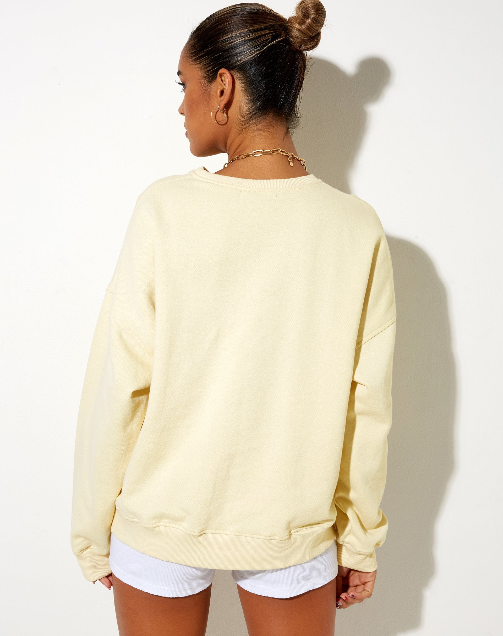 Crème is de kleur die je dit jaar nodig hebt. Onze Ted sweatshirt heeft een oversized pasvorm met lange mouwen, een ronde hals en "vacay" borduursel. Wij hebben de onze gestyled met een korte broeksokken, gympen en een ketting.